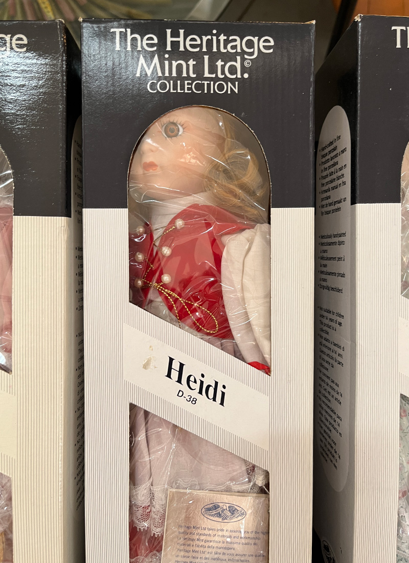 The Heritage Mint Ltd. รจ un’azienda nota per la produzione di una vasta gamma di bambole da collezione in porcellana, prodotte principalmente tra la fine degli anni ’80 e gli anni ’90.