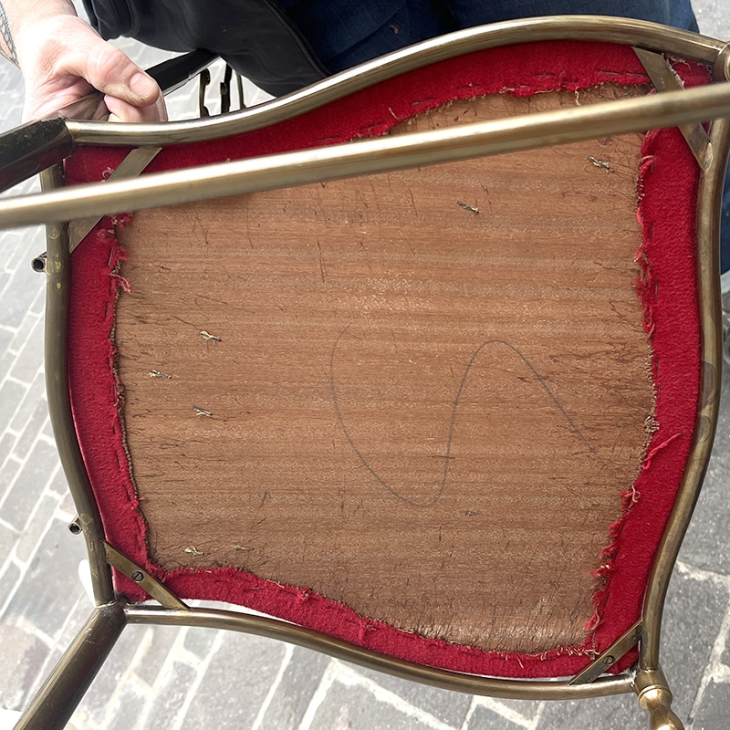 Misure della sedia ottone e velluto rosso vintage